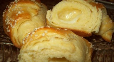 Razmutite kvasac u pola šolje toplog mleka sa malo šećera i brašna. Ostavite na toplom mestu. U dubljoj posudi izmešati brašno i so, dodati mast, jedno jaje i pripremljeni kvasac, pa sa mlakim mlekom zamesiti testo. Pokriti i ostaviti da naraste…