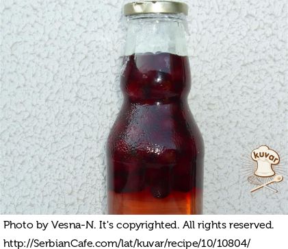 Višnjevača je gotova kada višnje padnu na dno staklenke i višnjevača dobije lepu crvenu boju.