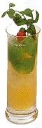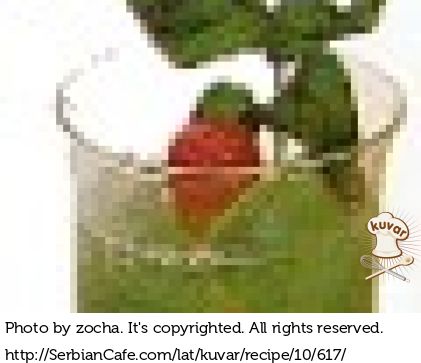Ostale sastojke staviti u šeiker i promućkati pa sipati u čašu i kratko promešati. Ukrasiti sa koktel višnjom i listovima od nane.