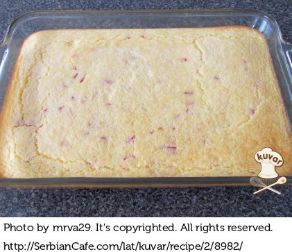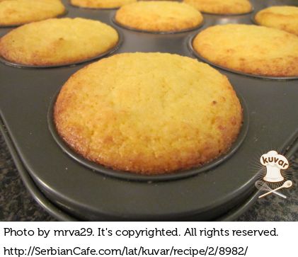 U posebnu činiju spojiti kukuruzno brašno, griz i prašak za pecivo. Dodati u smestu od jaja.