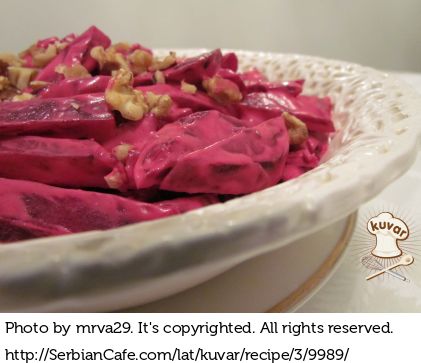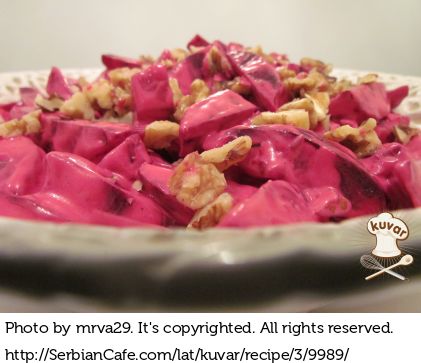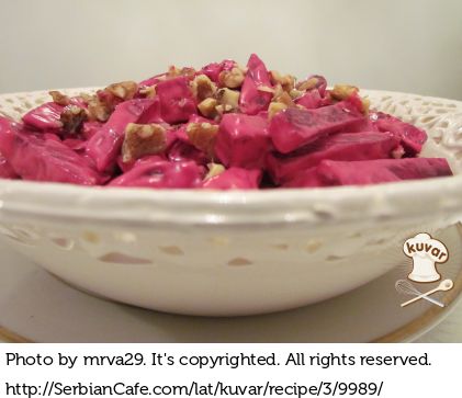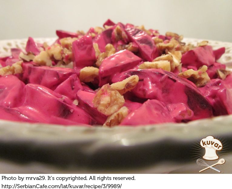 Pred samo serviranje, cveklu posuti sa krupno naseckanim orasima.