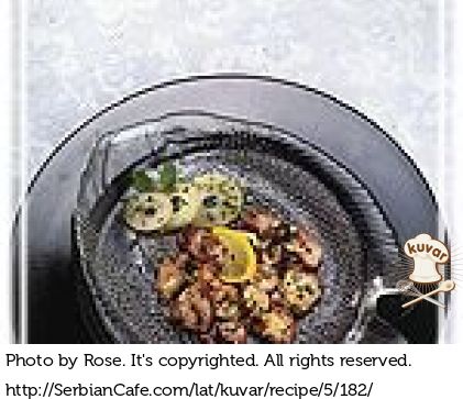 Očišćenoj hobotnici odrežite krakove i otvore krakova proširite, ali pažite da ih ne oštetite. Krakove ispunite nadevom koji ćete spremiti na sledeći način:naseckanu utrobu, vrećicu hobotnice, pomešajte sa sitno seckanim belim lukom i peršunom, dodajte mrvice i biber (po želji). Tako napunjene krakove zatvorite koncem i pecite na gradelama dok ne porumene iomekšaju. Nemojte soliti.