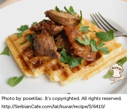 Zasebno ispržiš crni luk i serviras ga preko isprzene dzigerice.