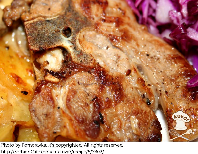 Zagrejati gril tiganj, pa skinuti koliko možete belog luka sa krmenadli i pržiti ih sa obe strane po vašoj želji. Moj muž voli prženiju jagnjetinu, a ja sam ih pržila oko 5 minuta. Okrenuti ih samo jednom. Ako imate gril tiganj ne morate skidati beli luk jer on će pasti između pa neće biti na mesu, a ako nemate gril tiganj, onda morate da skinete, jer beli luk prilikom prženja postaje gorak.