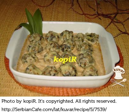 Uz mešanje kuvati 1 min i preliti preko šampinjona.