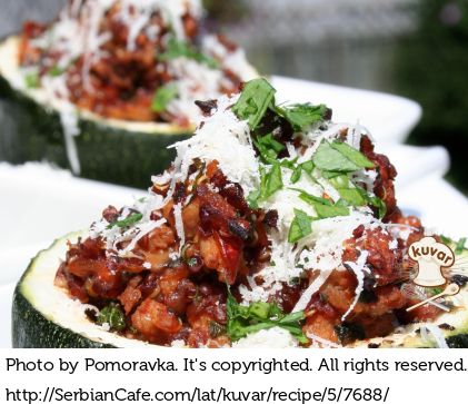 Iseći tikvice oko 7cm dužine, pa ih izdubiti ali ne skroz, ostaviti malo "mesa" na dnu, da napravite kao čašicu,malo posoliti,pobiberiti i premazati ih četkicom sa malo maslinovog ulja i staviti da se peku u rerni, treba ih peći,oko 10 do 15 minuta.Od pečenih tikvica, ocediti tečnost, koja se stvorila prilikom pečenja.