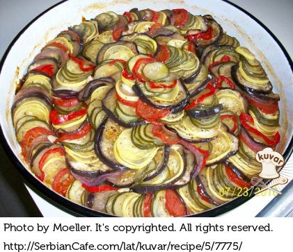 Ipak, na selu (u Provansi), Francuzi je prave najčešće tako što se prži (na vrlo malo maslinovog ulja) svako povrće posebno: prvo paprike iseckane na trake, zatim se paprike izbace iz tiganja i na njihovo mesto dođu kockice ili kružići patlidžana, pa kad oni dobiju boju, na njihovo mesto dođu tikvice. U ovom momentu, svi ostali sastojci se vraćaju u tiganj, (ja koristim wok jer je najdublji), dodaje se seckani paradajz (ne jedan nego 3-4, a možete dodati i malčice (ali samo malčice!) paradajz pirea.