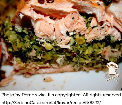 Losos s pistaćima obmotan prazilukom