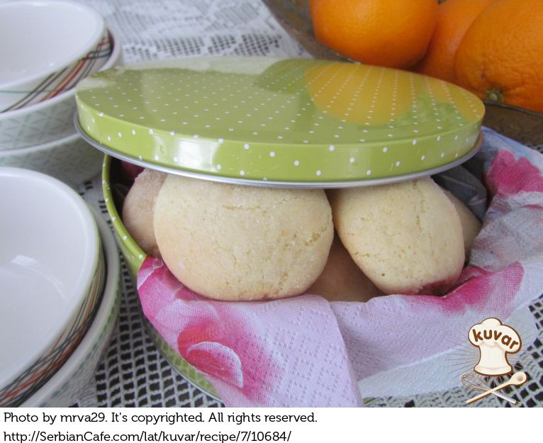 Od testa otkidati male komadiće veličine oraha i oblikovati u loptice. Loptice uvaljati u prah šećer i staviti u tepsiju obloženu sa papirom za pečenje.