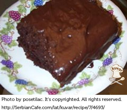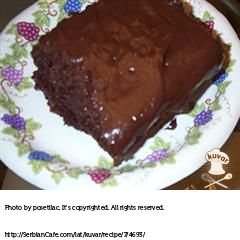 Glazura: 100 g čokolade rastopiti i preliti preko vrućeg kolača