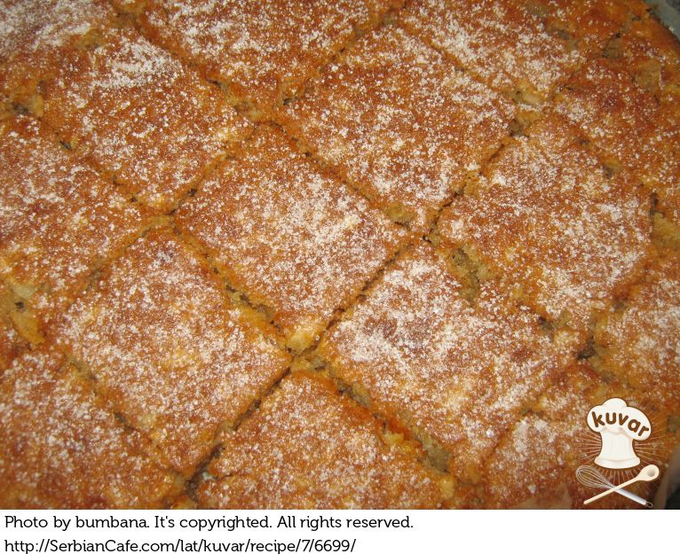 izrendane jabuke sam prelila sa malo hladnog mleka, kasnije sam dodala secerra- po ukusu! zatim ulje. u drugom sudu sam umesala jaja dodala sam jabuke i na kraju brasno. Nisam mutila mikserom vec zicom! Umesto sode b.stavila sam 1 p.za pecivo! I mogu vam reci da mi je zaista lepo ispao!