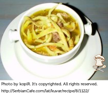 Supa: Meso i kosti dobro oprati hladnom vodom, staviti u jedan lonac, naliti hladnom vodom i staviti da se kuva. Kada počne pena da se pojavljuje, kašikom je skupljati i bacati.