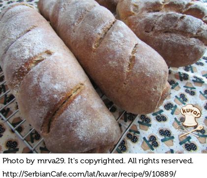 Nadokiseo kvasac, omekšani maslac, ostatak vode i jaje dodati u činiju sa brašnom. Od navedenih sastojaka zamesiti testo. Testo premazati sa malo ulja i pokriti sa providnom folijom da naraste. Nadokislo testo staviti na ravnu brašnom posutu površinu. Testo podeliti na 4 dela i oblikovati testo po želji u okrugli ili u duguljasti oblik.