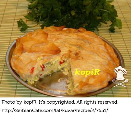 Površinu napakovane pite premazati mešavinom ulja i vode (1:1).