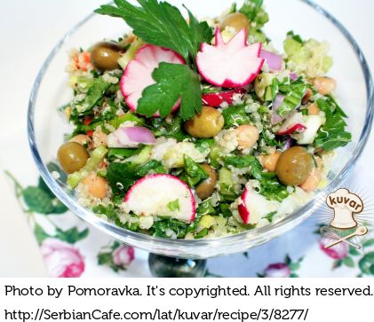 Predivna salata! Ovo tacno moze da bude glavni obrok, super je. Volim leblebije, ali ne znam sta je kinuva. Malo sam guglala i videla da su to zrna, ima ih svetlih i tamnih, a videla sam da se prodaje i samleveno, kao prah.