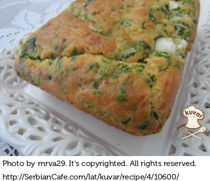 Na kraju umešati rendani sir, fetu iseckanu na kocke i spanac. Polako sve promešati i istresti u tepsiju veličine 23x13 cm.