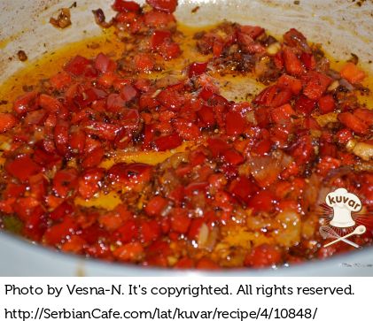 Pržiti cca 5 min. odnosno dok tekućina ne ispari a paprika bude dobro upržena.