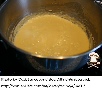 U šerpu rastopite puter, dodajte brašno i mešajte sve dok se ne sjedini.