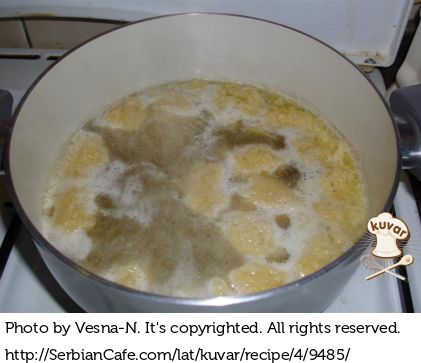 Kašičicu zagrejati i navlažiti u toploj supi, vaditi smesu istom i stavljati u supu.