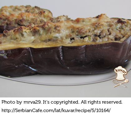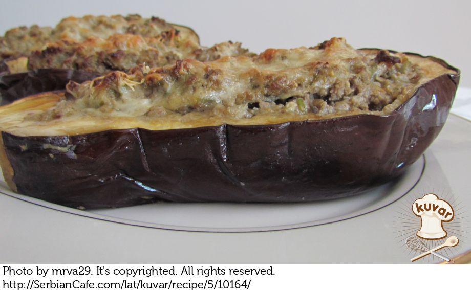 Na istom ulju dinstati iseckani luk, mleveno meso i iseckani beli luk. Zatim dodati iseckane delove patlidžana, so, biber i vino.