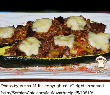 Dok se tikvice peku propržite mleveno meso i pripremiti nadev.