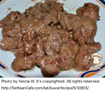 U šerpi zagrejati ulje i staviti pileću džigericu da se pirja uz stalno mešanje i podlevanje vodom (cca 100 ml) 10 min.