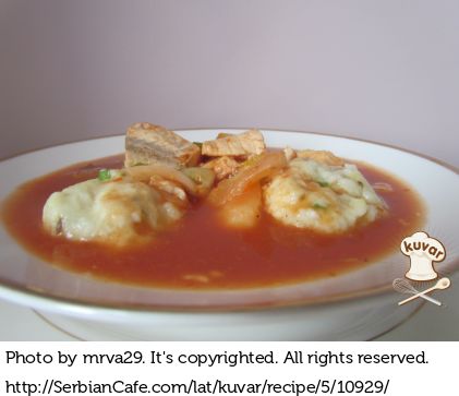 Ocedjene knedle sipati u činiju za supu i na kraju dodati supu.