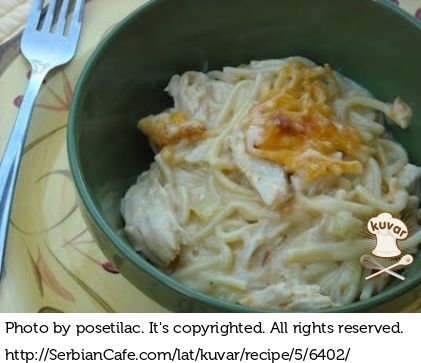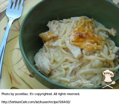 Kada se povrće pretvori u kašu, dodati sitno seckano belo meso i dinstati još par minuta. Nakon toga isljučiti i dodati pavlaku ili kiselo mleko. Služiti toplo.