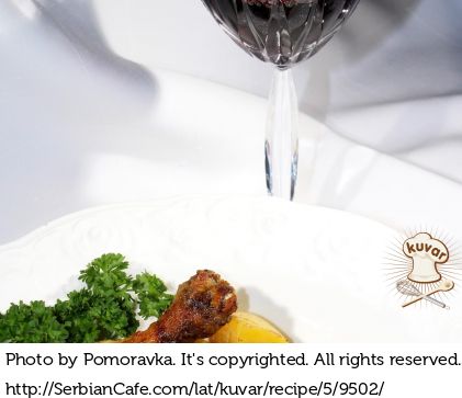 Peći oko sat vremena poklopljeno, proveriti sa viljuškom da li je krompir pečen i ako je pečen otklopiti i peći još desetak min. da tečnost vrlo malo uvri. .. pazite da vam ne uvri mnogo.