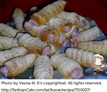Početak testa posle prvog namotaja malo premazati belancem, nastaviti namatati i ponovo zadnji namotaj premazati belancem da se testo međusobno zalepi.
