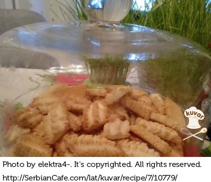 Umesiti sve sastojke, brašna dodavati koliko upije. Uzeti mašinu za mlevenje mesa i staviti nastavak za kekse i vaditi komadiće dužine prsta ili kraće.