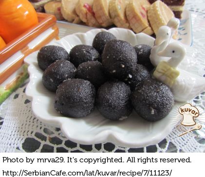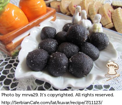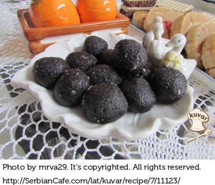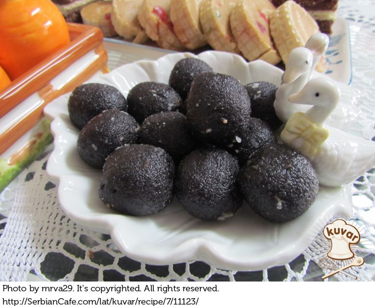 Napravljene kuglice umakati u otopljenu čokoladu ili uvaljati u kristal šećer.