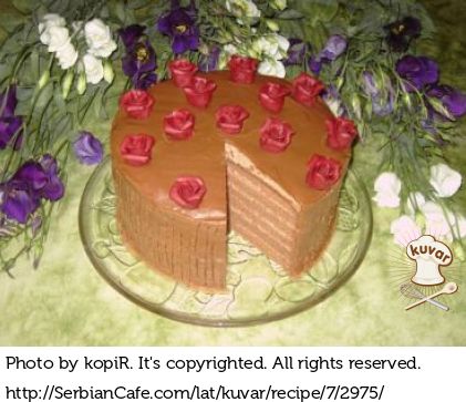 Papabosh,samo za tebe:)Ima recept na diskusijama,potrazi na 'lupici',ja nasla.Sretosmo se 'na torti':)