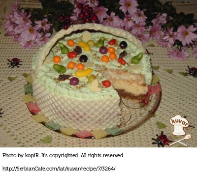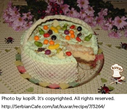 P.S. Želatin pomešati s 5-6 kašika pavlake u tečnom stanju, staviti da se zagreje (ne da proključa), pomešati s ostalom pavlakom, a zatim s ostalom masom za fil.