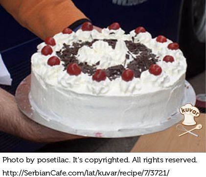 Dno i strane kalupa (koji je obložen plastičnom folijom premazanom sa malo ulja) obložiti piškotama. U posebnoj posudi lagano promešati šećer i pavlaku tek toliko da se masa sjedini. Otopiti čokoladu sa vrlo malo mleka. Preko piškota sipati polovinu fila od pavlake, potom posuti višnjama (koje ne moraju biti odmrznute), a preko višanja sipati čokoladu. Preliti sve to drugom polovinom fila od pavlake. Gornju stranu torte potom prekriti piškotama. Ako su višnje zamrznute, ostaviti tortu na sobnoj temperaturi oko 45 min. pa staviti u frižider da se stegne. Ako su korišćene odmrznute, torta se može odmah staviti u frižider. U oba slučaja, torta je ukusnija ako se služi sutradan. Kada se torta stegne, izručiti je na poslužavnik tako da deo prekriven folijom bude gore. Pažljivo skinuti foliju. Umutiti šlag i premazati tortu. Poslužiti.