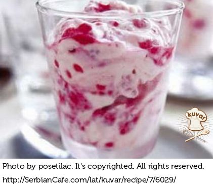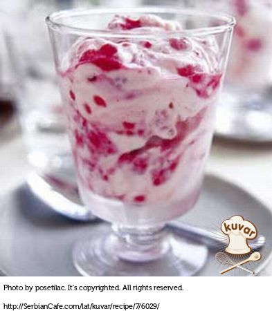 Belu čokoladu rastopiti i preliti preko malina, a odozgo staviti umućenu slatku pavlaku.