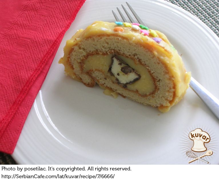 Polovina te mase (ili malo više) je fil kojim ćete namazati patišpanj, a ostatak koristite da premažete kad uvijete u rolat.