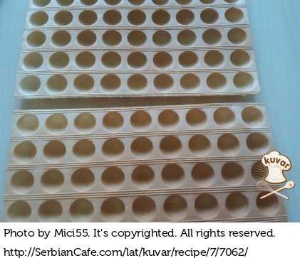 Na jedan list oblande ili u 27 kuglica, staviti po jedan ceo lešnik, preklopiti drugim listom oblande i ostaviti da se stegne. Obavezno staviti knjigu ili nešto slično preko oblande, da se ne bi razdvajale. Dovoljno je par sati da se stegnu.