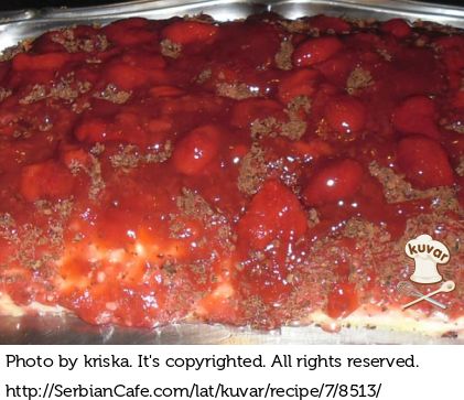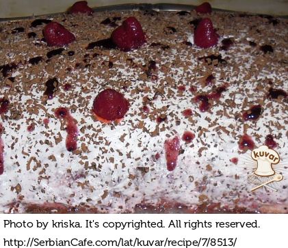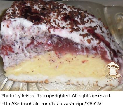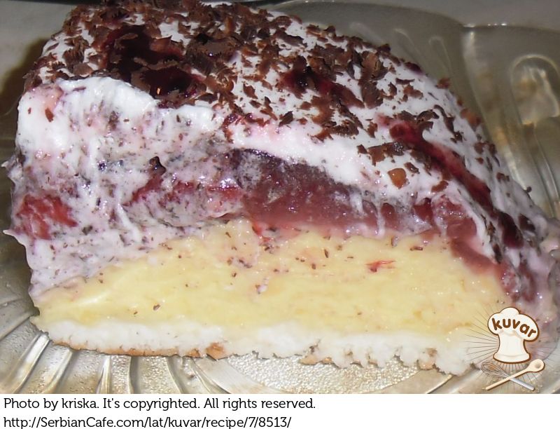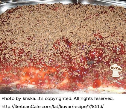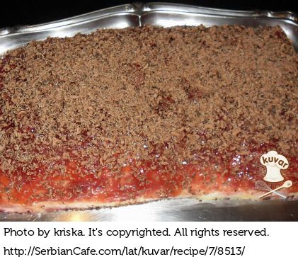 Ostaviti da se malo prohladi, pa polovinu izliti preko prvog fila.