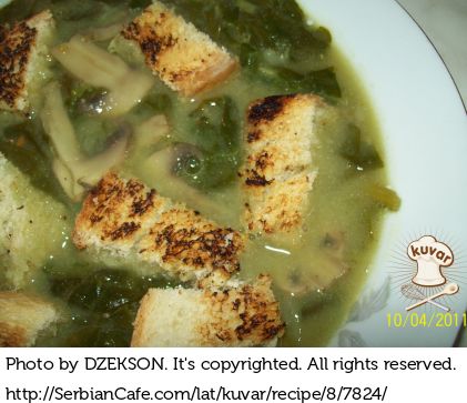 Ovu čorbu možete služiti sa kockicama prepečenog hleba, efekat je odličan, čak se i meni dopalo i pored spanaća!