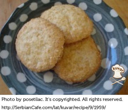 Sve sastojke izradite u fino glatko testo. Pokrijte salvetom, stavite u frižider najmanje 1 sat da odstoji. Rernu zagrejati na 180°C. Sa blago nabrašnjenim dlanovima praviti pogačice, pa ih malo zapeći na ugrejanom tiganju da samo malo porumene sa obe strane, po samo minut, minut-i po sa svake strane. Složiti ih na pleh (malo podmazan puterom) i peći oko 30 minuta. Kada su gotove, prekrijti ih čistom salvetom.