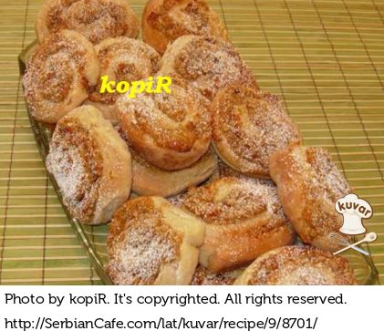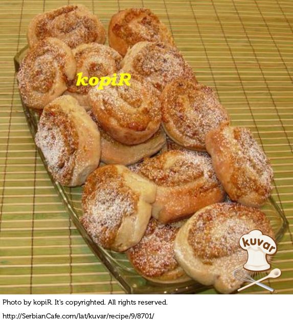Razvučeno testo premazati filom, uviti u rolat i seći parčiće debljine 1,5 – 2 cm.