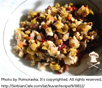 | 150-200 g | iseckanih maslinki, sušenog paradajza, belog luka, ljutike |